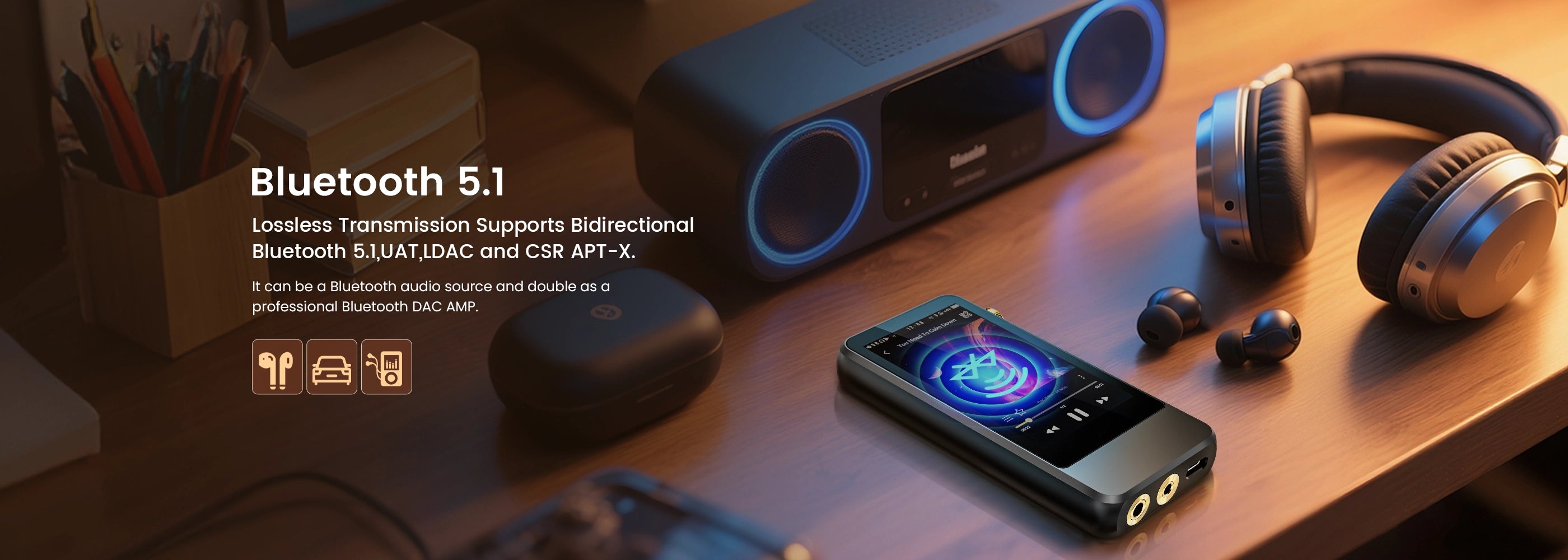 However, its powerful two-way Bluetooth 5.1 functionality allows you to connect it to your smartphone or other devices. You can then use the H20 Pro as a high-quality Bluetooth DAC to stream music wirelessly from any service, utilizing the player’s superior audio hardware to enjoy better sound quality than your phone's built-in DAC.