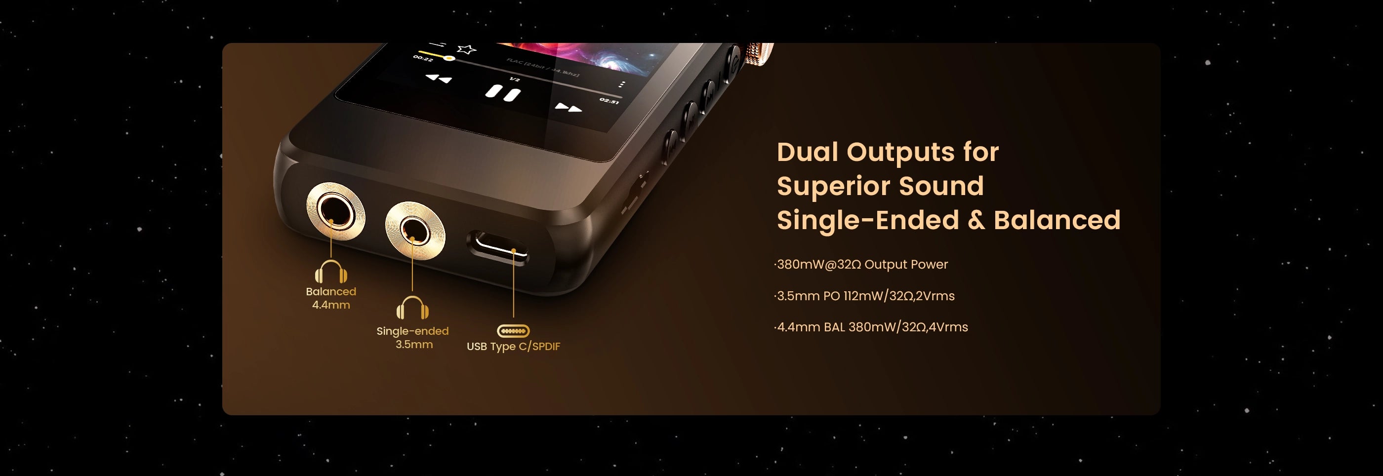 - 3.5mm + 4.4mm Balanced Outputs: Drive both standard and high-end audiophile headphones.