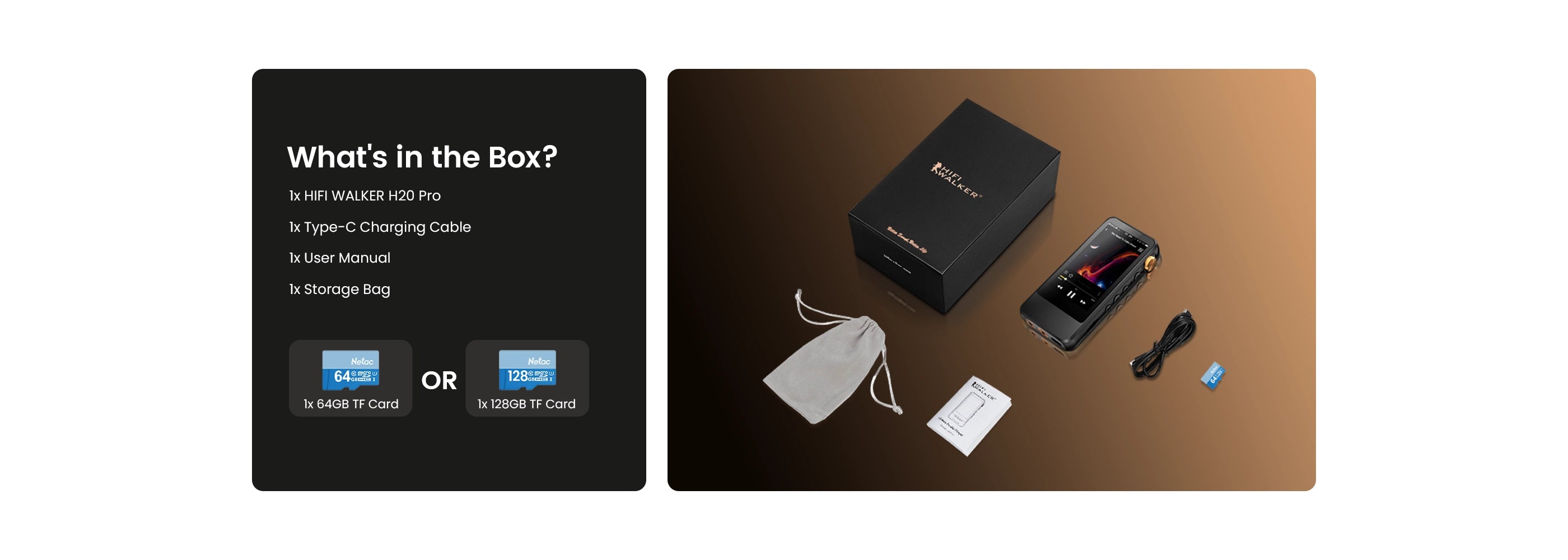 The H20 Pro's powerful decoding chip can natively handle audio files up to 32-bit/192kHz and DSD256, delivering exceptional sound quality for every track.