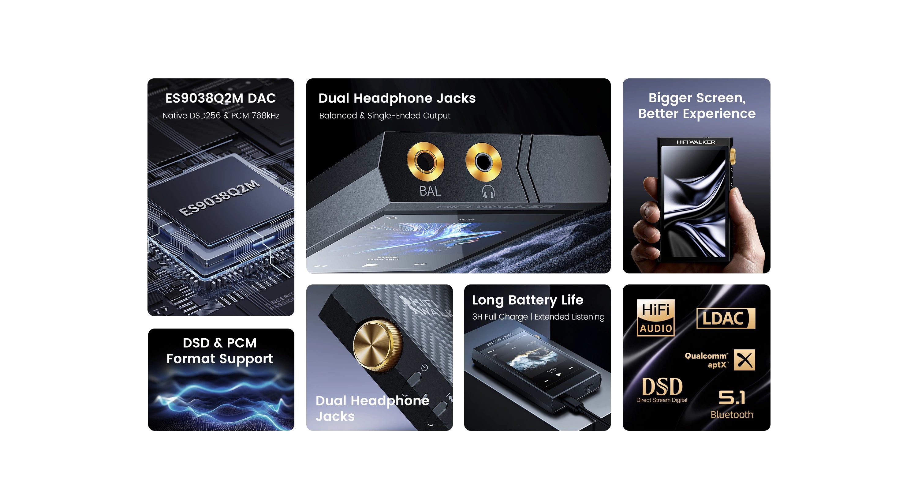 - Wireless Hi-Fi -Bluetooth 5.1 with LDAC and aptX HD; TX/RX two-way for high-resolution wireless listening.