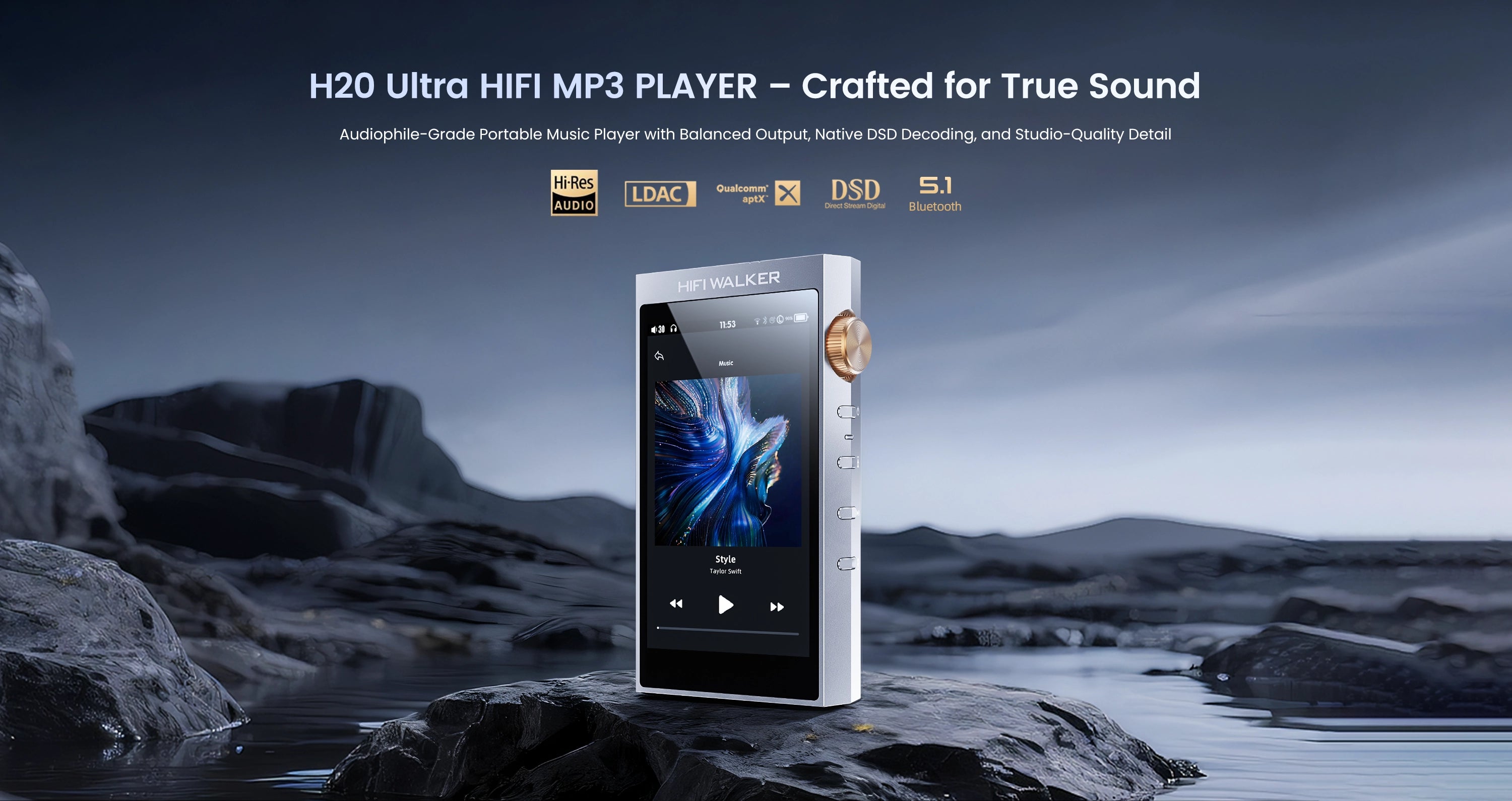 HIFI WALKER H20 Ultra, Flagship Hi-Res Music Player with ES9038Q2M DAC, 4.4mm Balanced & 3.5mm Outputs, FPGA Native DSD256, Two-Way LDAC Bluetooth, 4" Touchscreen & USB DAC.