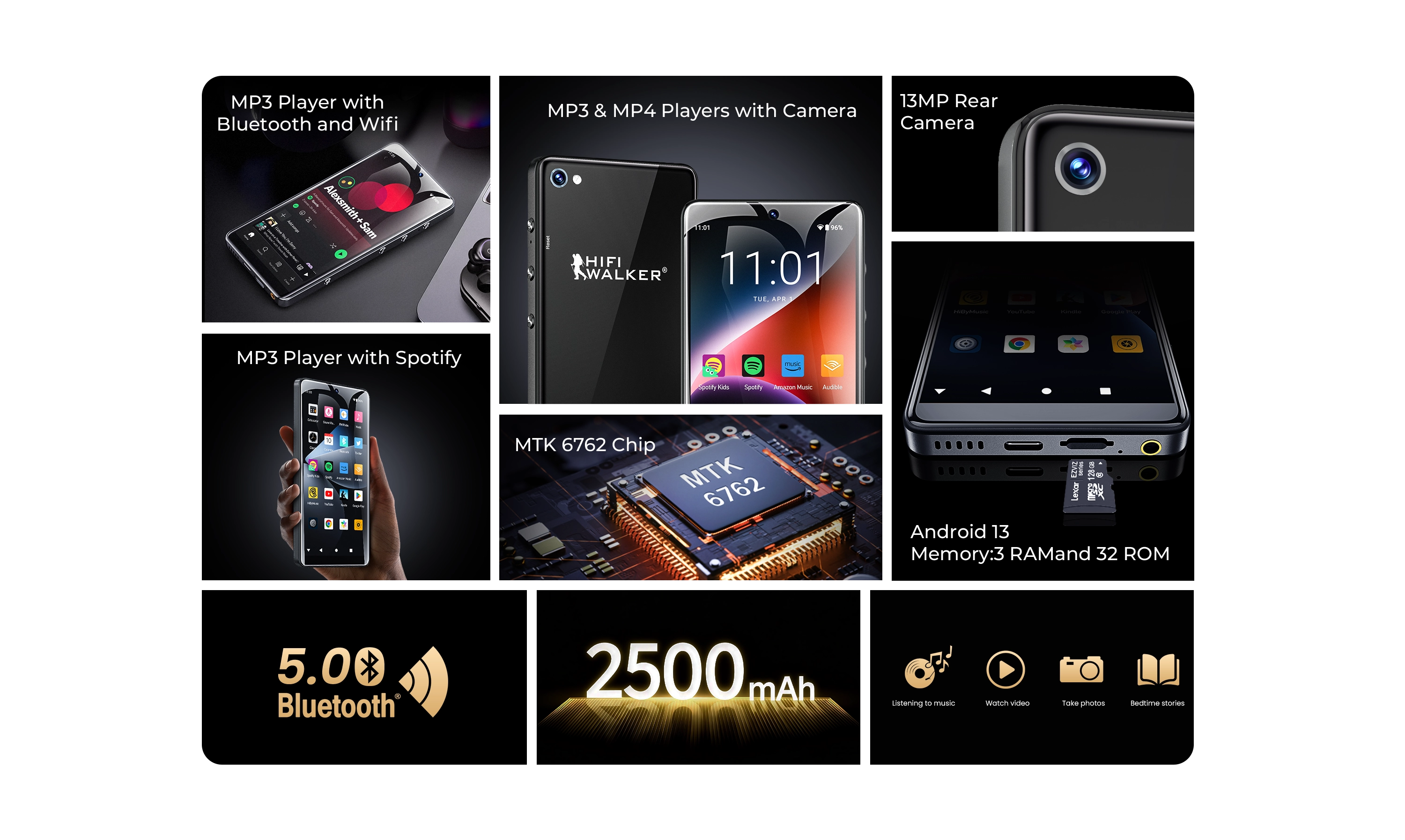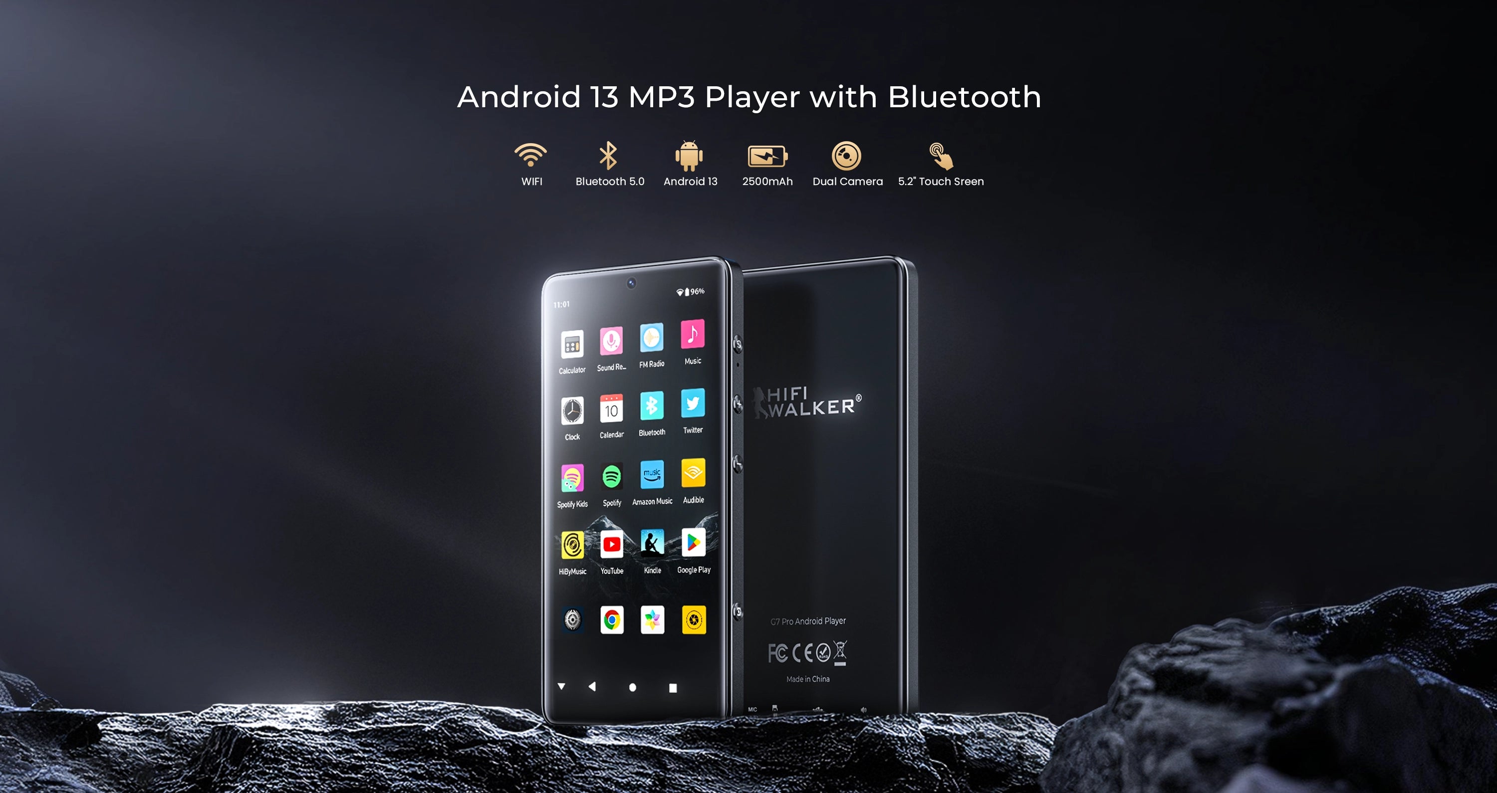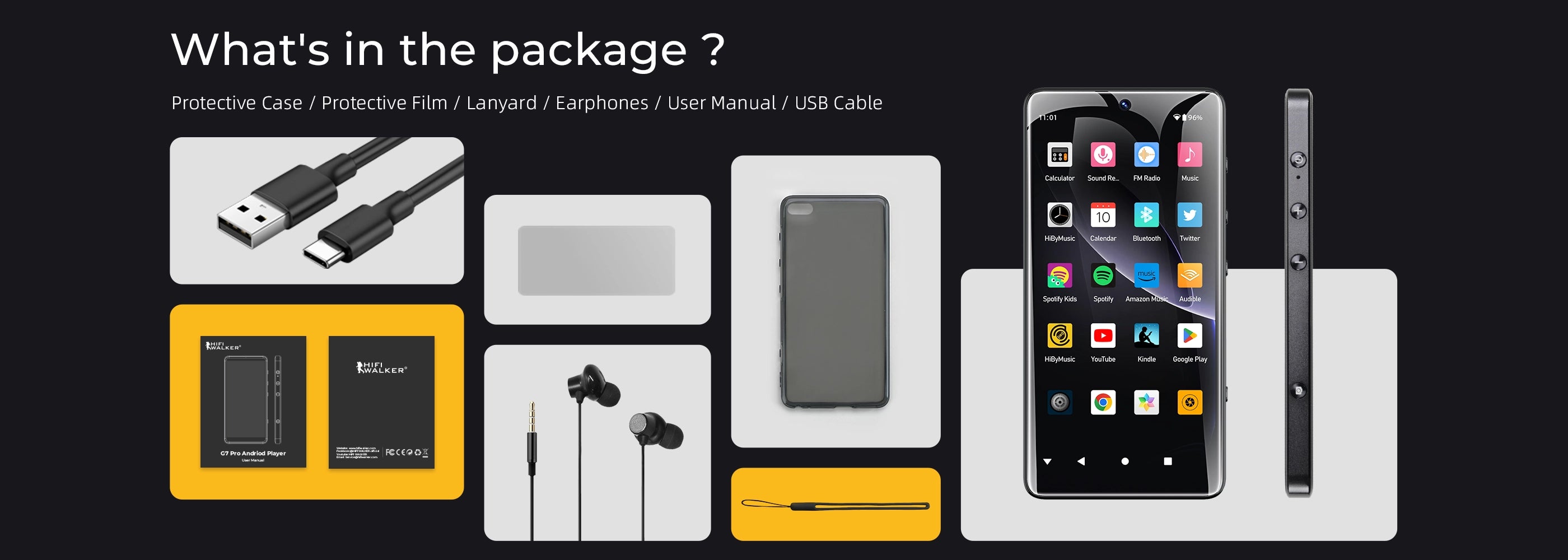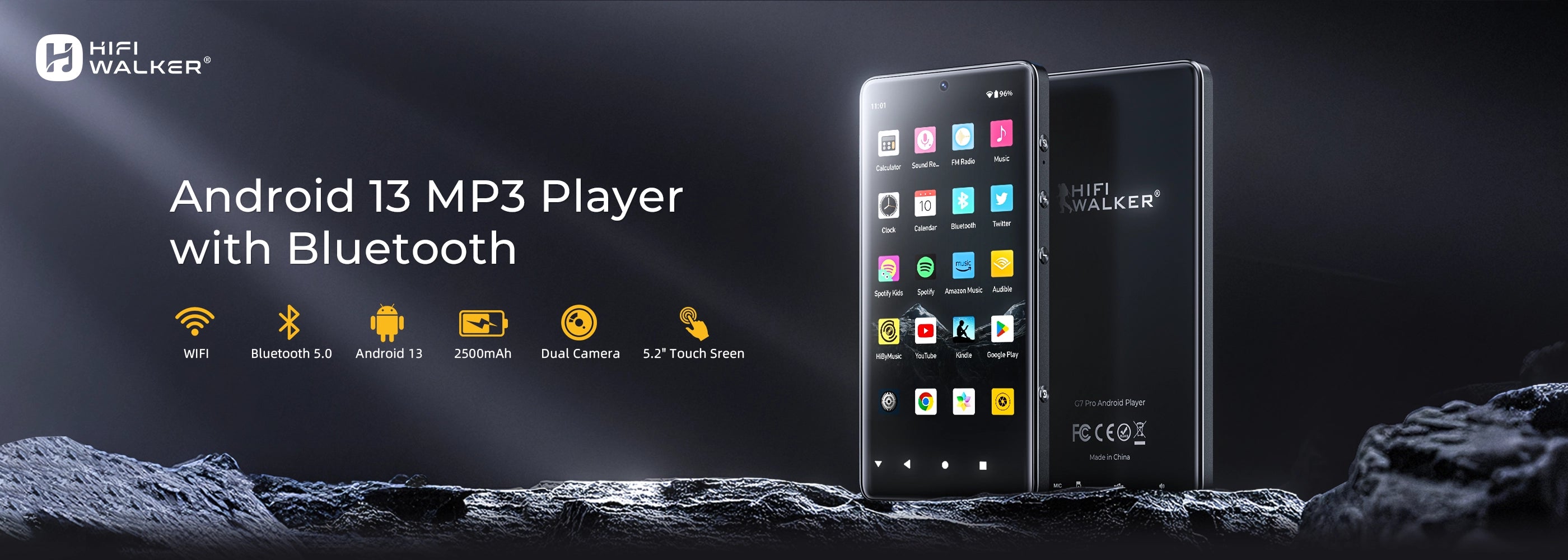 Meet the HIFI WALKER G7 Pro, the ultimate Android 13 MP3 player. With Wi-Fi for Spotify, dual cameras, parental controls, and Hi-Fi audio, it's the perfect smart player for kids, students, and music lovers.